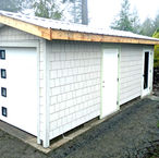 Small garage exterior finished with Hardie shingle siding by Nanaimo Carpenter David Ellis Construction